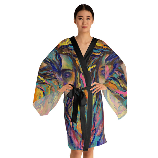 Artistic Long Sleeve Kimono Robe - Vibrant Design for Spiritual Comfort