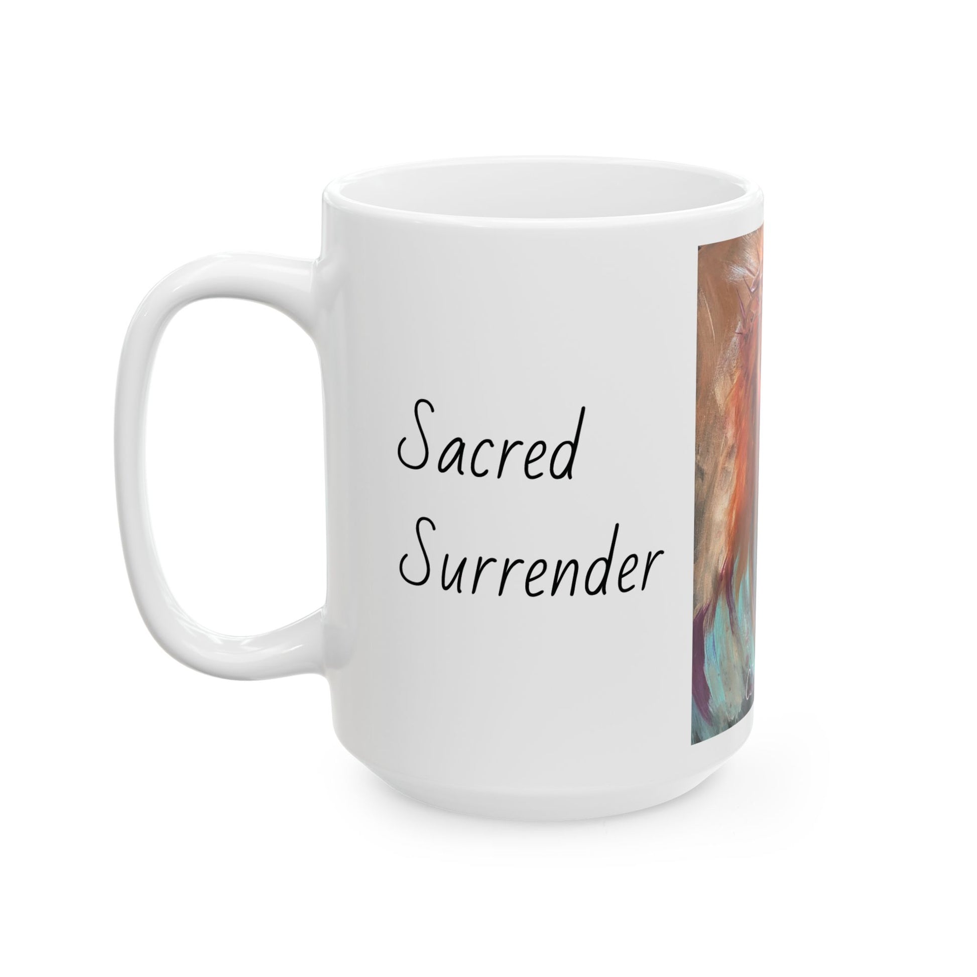 Jesus: Sacred Surender, White Ceramic Mug, (11oz, 15oz)